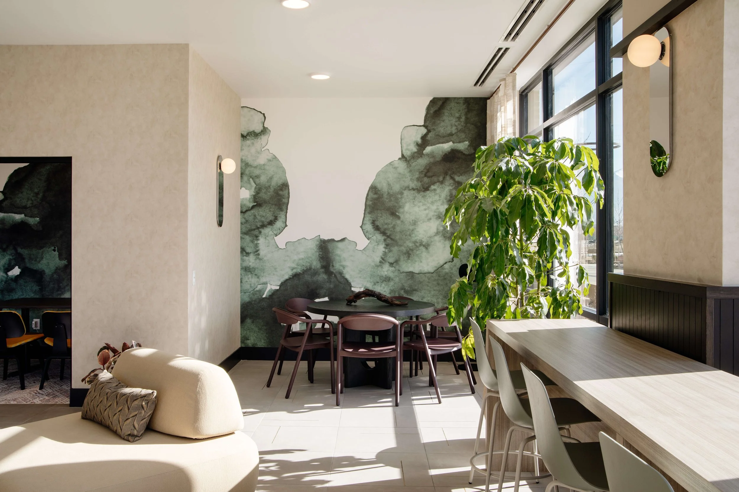 220 Bend redefines the boundaries between the urban and the natural, the communal and the wild. Drawing inspiration from the untamed beauty of Utah Valley, the design blends classic American craftsmanship with contemporary comfort. Rugged textures, organic tiles, and subtle greenery reinterpret the grit and authenticity of Utah’s storied landscape into a warm and communal space to call home.