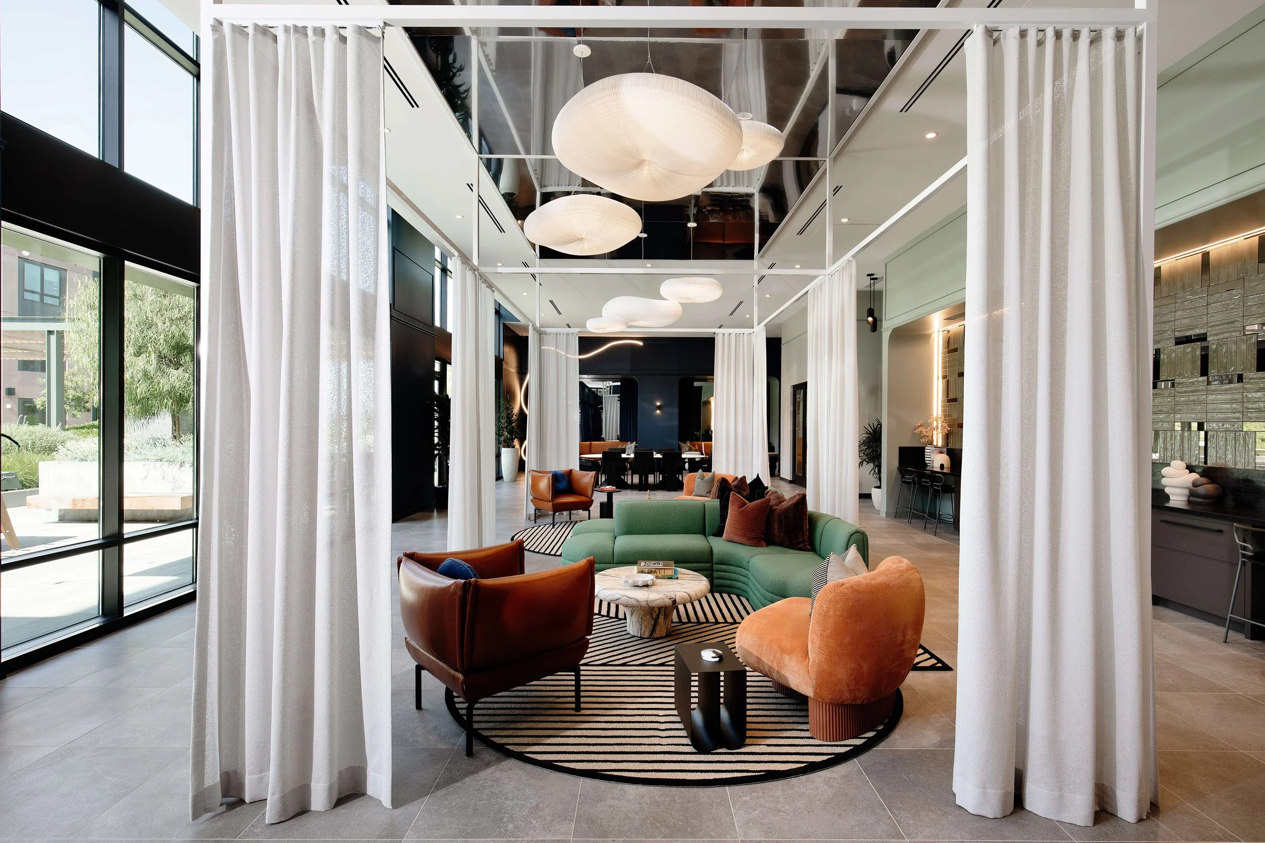 Alba is a vibrant mixed-use community on the border of Santa Clara and San Jose, just steps from major tech campuses, entertainment venues, and neighborhood parks. Its design embraces bold color, playful forms, and rich patterns, creating interiors that feel polished yet experimental. Double-height lounges, collaborative spaces, and a central park bring people together, while dining, retail, and market options add energy at every corner. Alba offers a spirited, modern lifestyle for professionals, students, and families alike.