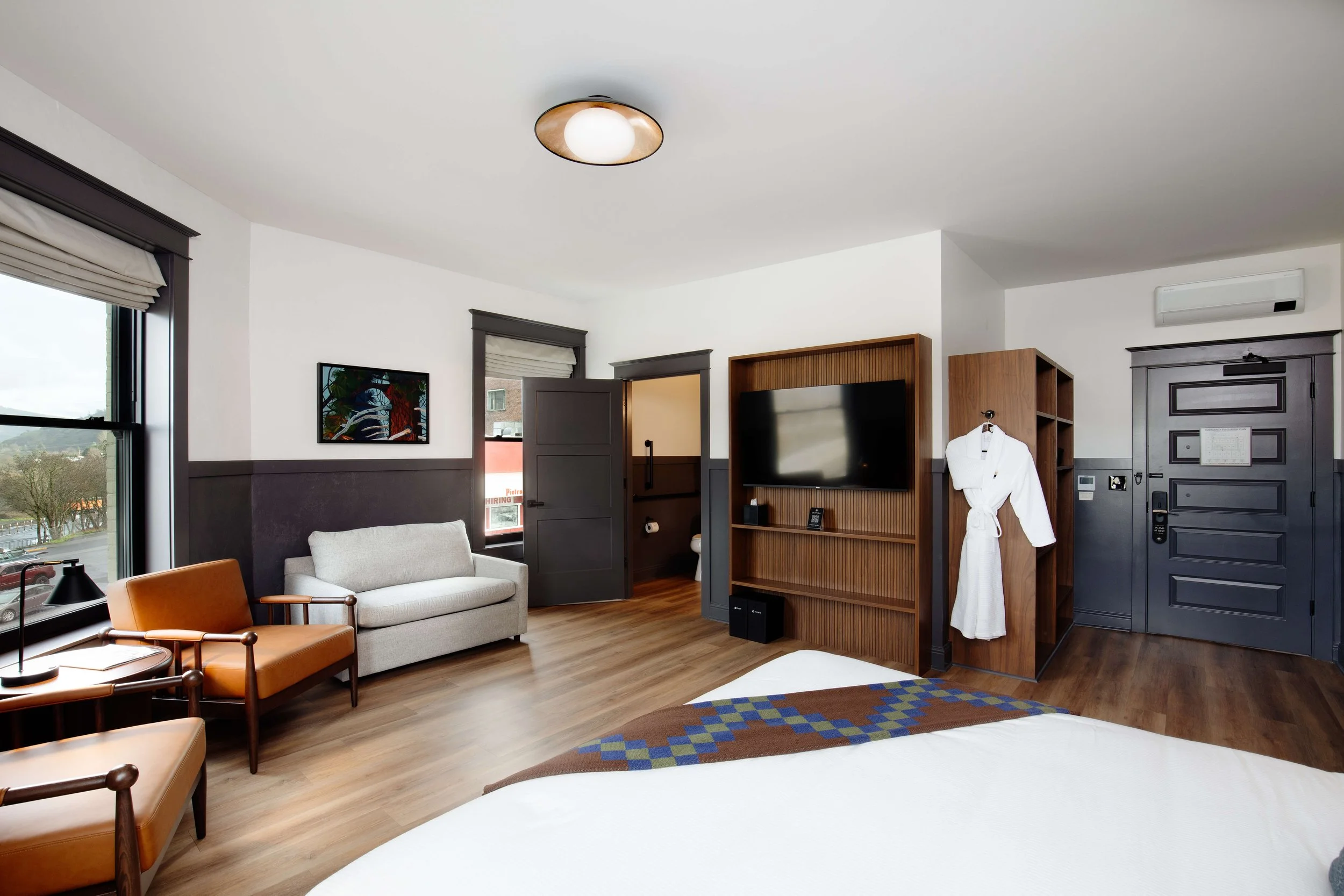 This historic four-story hotel in Hood River has long been a gathering place for travelers, adventurers, and locals passing through the Gorge. The interiors blend the warmth of the past with modern comfort—rich wood, saturated colors, layered patterns, and inviting textures set within the original century-old structure. Guests can linger over a lively food and beverage program, unwind in an underground spa, or take in views of the Columbia River from the rooftop. Designed to draw you in and make you want to stay awhile, the Lightwell Hotel feels like Hood River’s living room.
