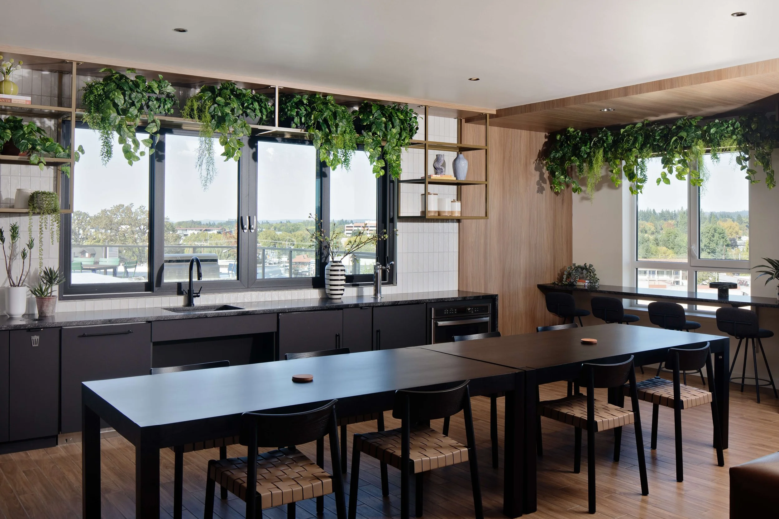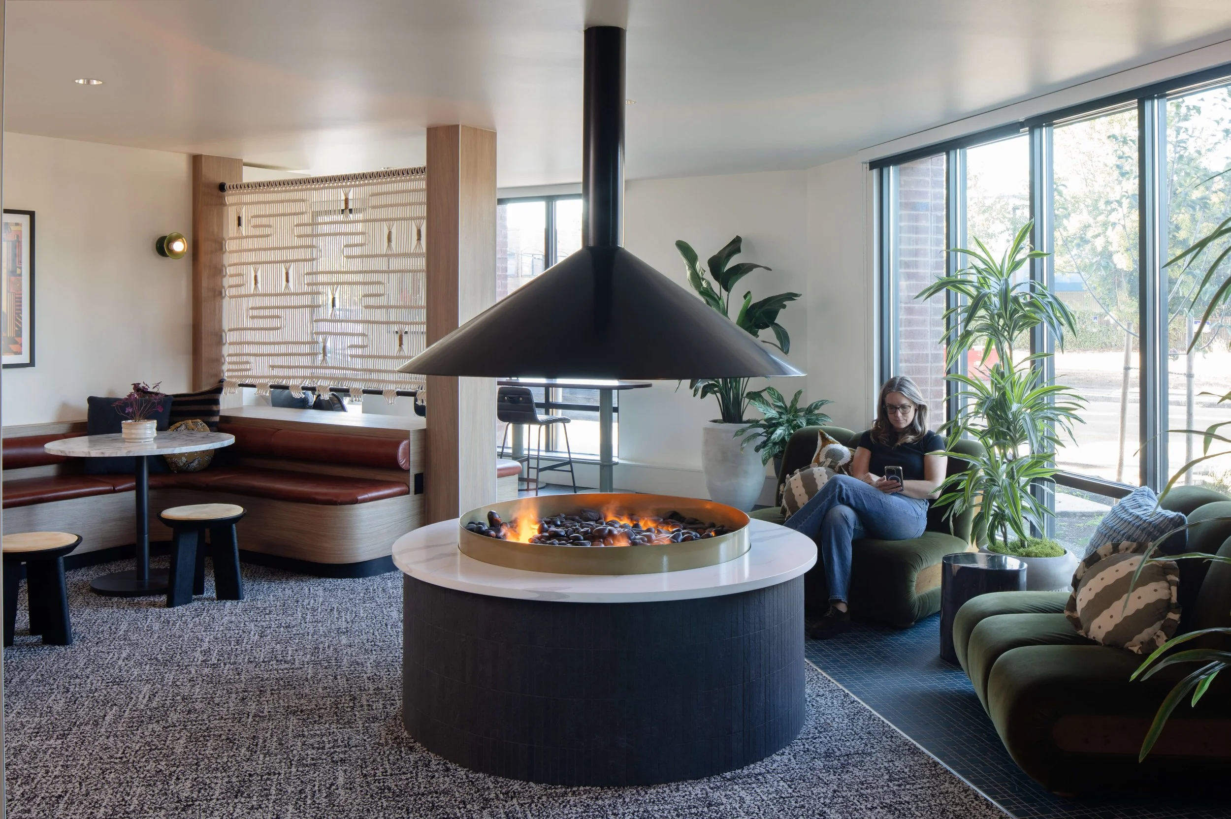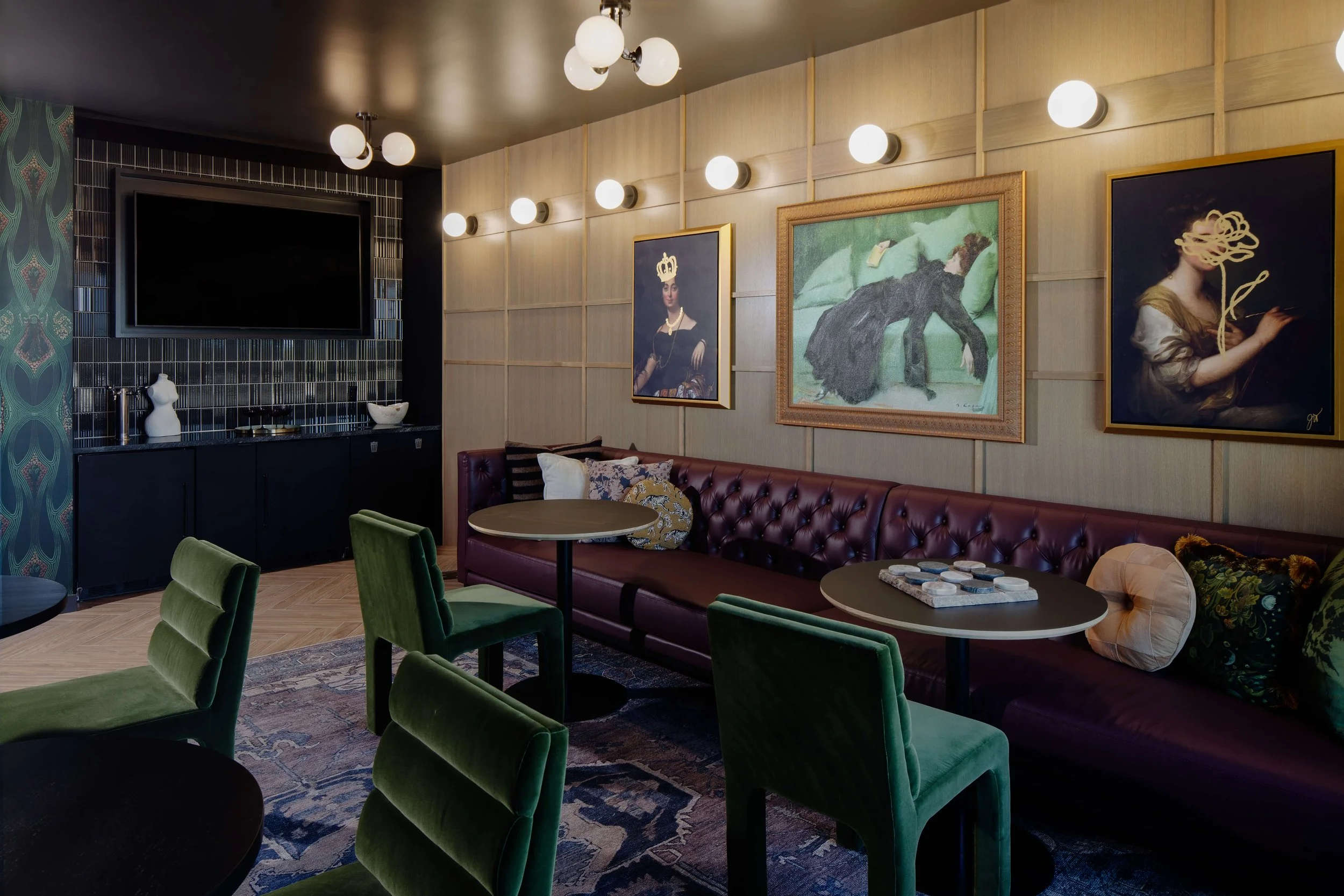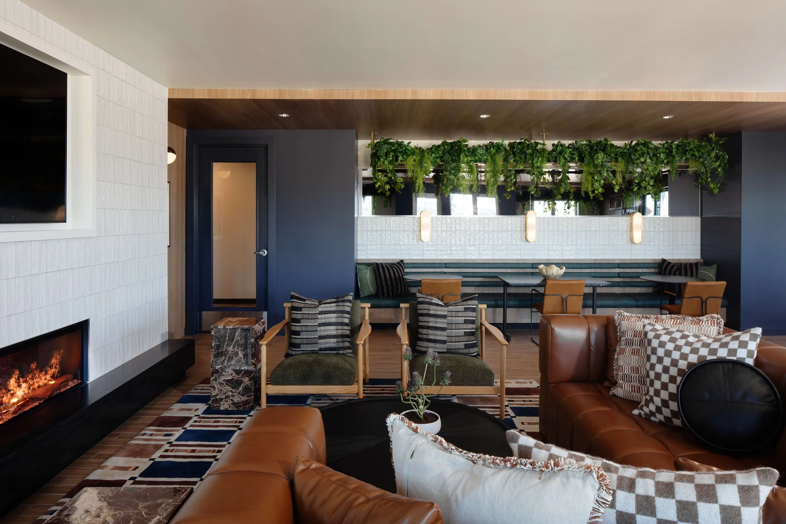 Modera Beaverton is located in the heart of Downtown Beaverton, surrounded by brick-lined streets and vintage storefronts that reflect the area’s character and history. The project takes a contemporary approach to the industrial classic aesthetic, blending timeless elements with a relaxed, modern sensibility. Casual textures, emerald green accents, vintage-inspired art moments, and bold classic signage create spaces that feel warm and approachable. Subtle references to Beaverton’s film and aerospace history are woven throughout, grounding the design in its context while offering the comfort and functionality of modern life.