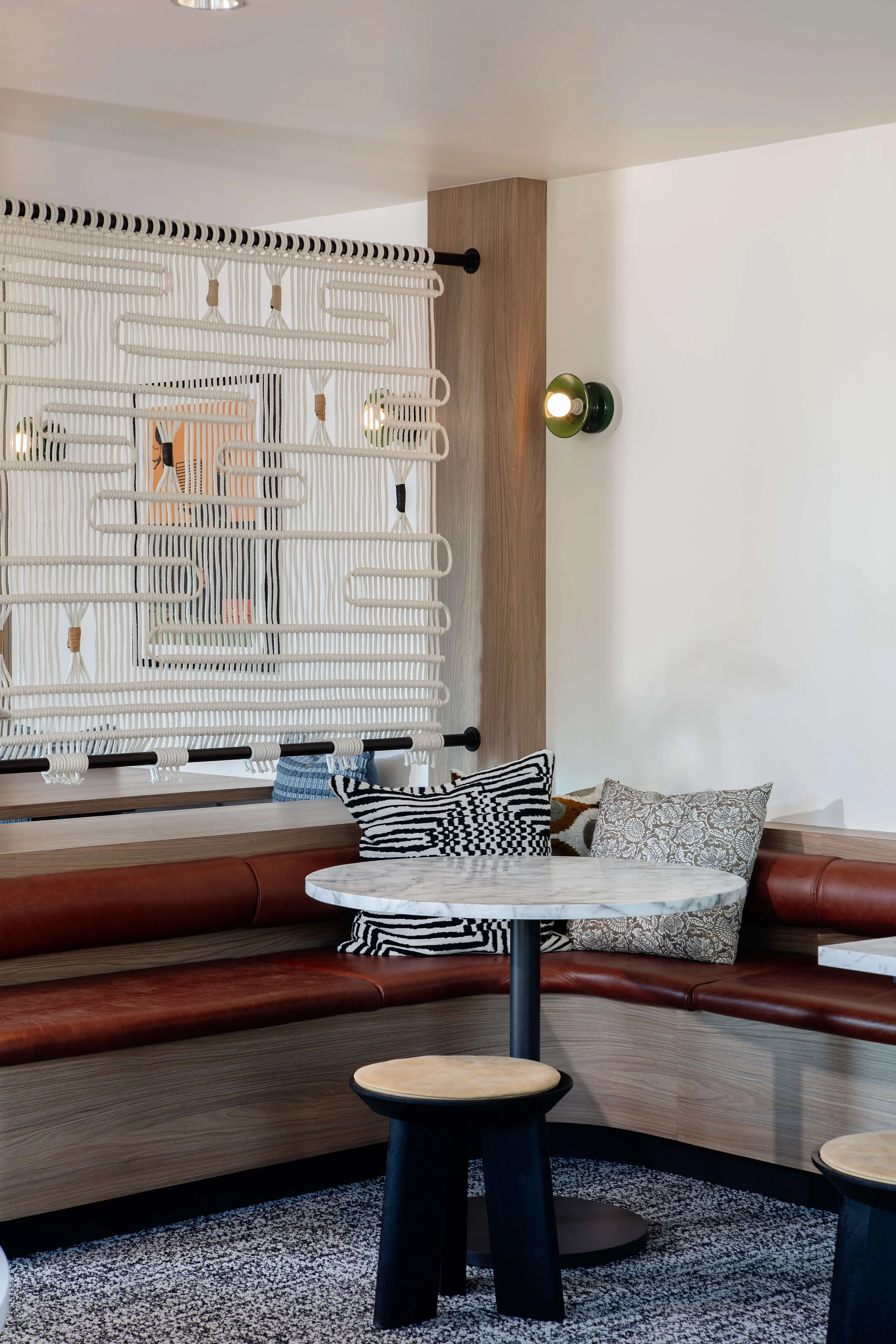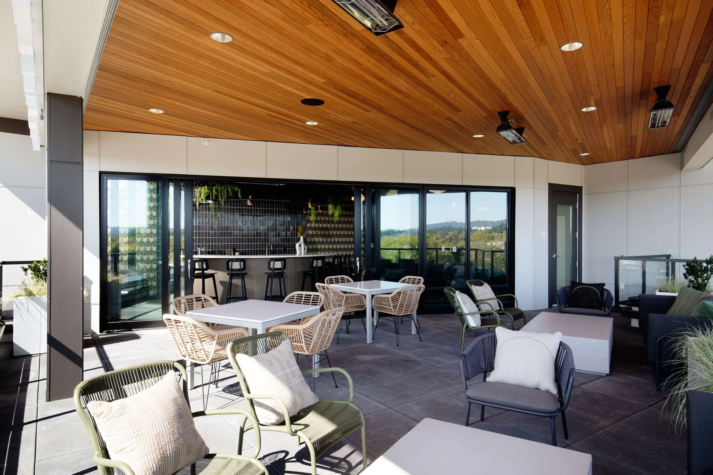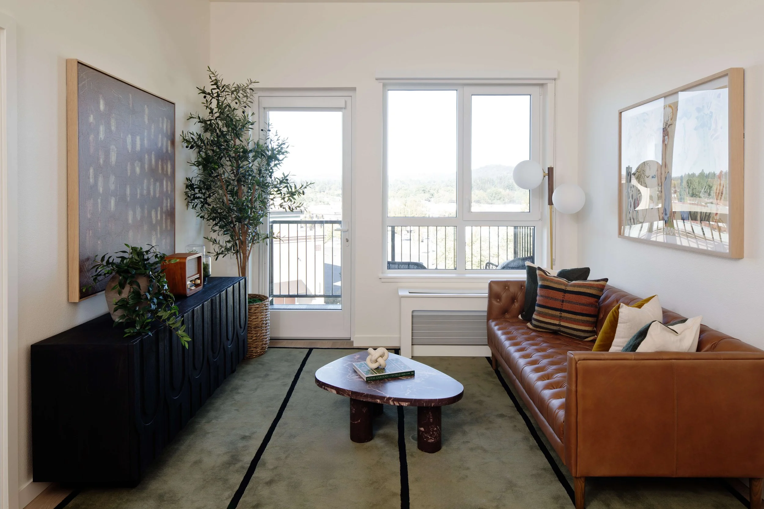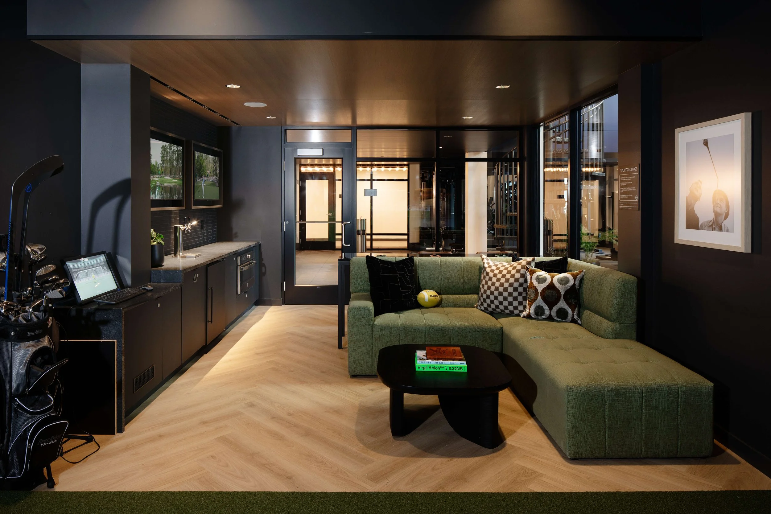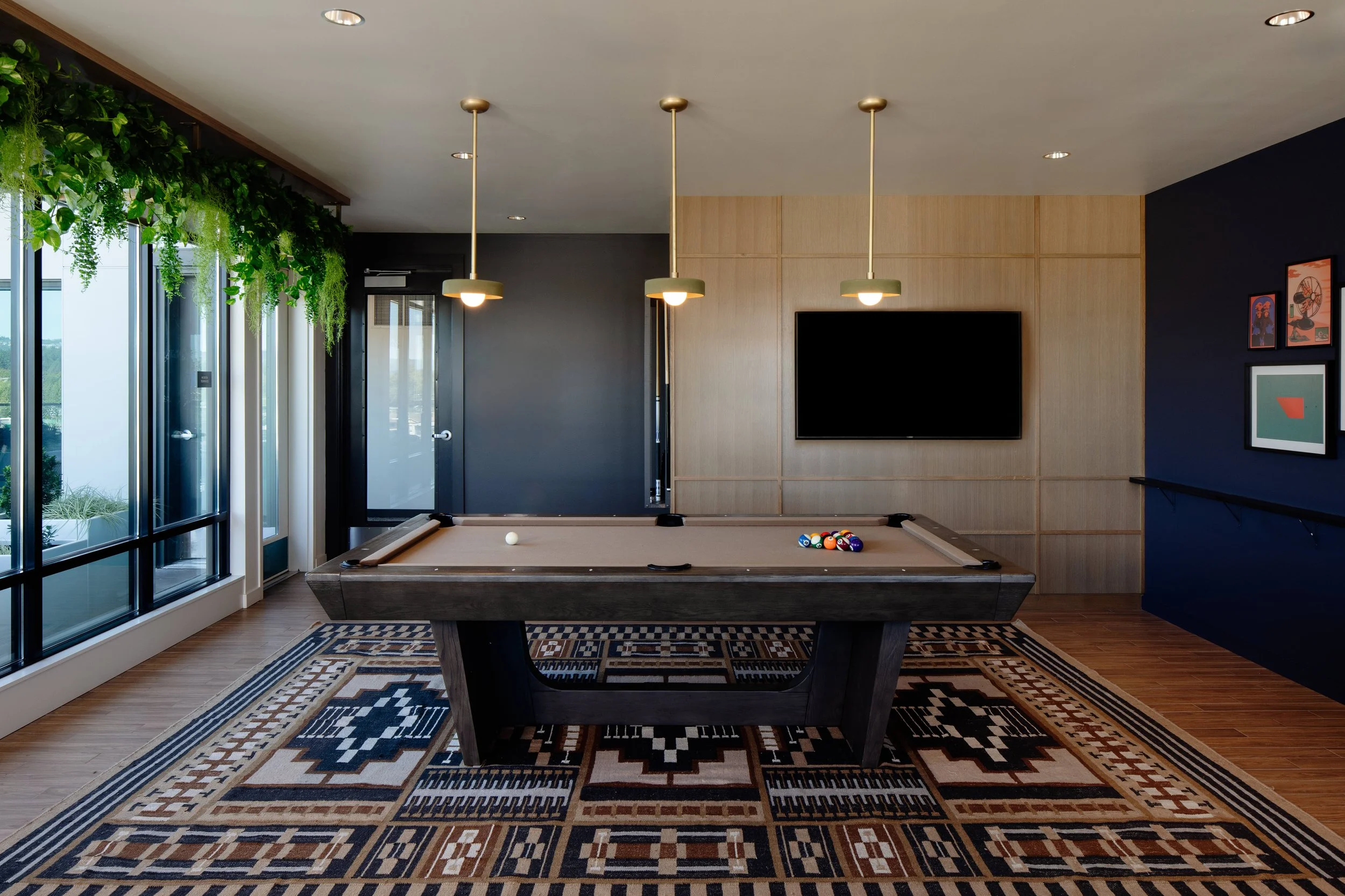 Modera Beaverton is located in the heart of Downtown Beaverton, surrounded by brick-lined streets and vintage storefronts that reflect the area’s character and history. The project takes a contemporary approach to the industrial classic aesthetic, blending timeless elements with a relaxed, modern sensibility. Casual textures, emerald green accents, vintage-inspired art moments, and bold classic signage create spaces that feel warm and approachable. Subtle references to Beaverton’s film and aerospace history are woven throughout, grounding the design in its context while offering the comfort and functionality of modern life.